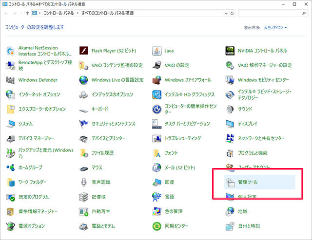 ■手順1「コンパネ」>「管理ツール」