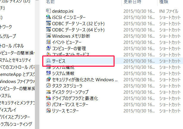 「管理ツール」にある「サービス」をダブルクリックします。