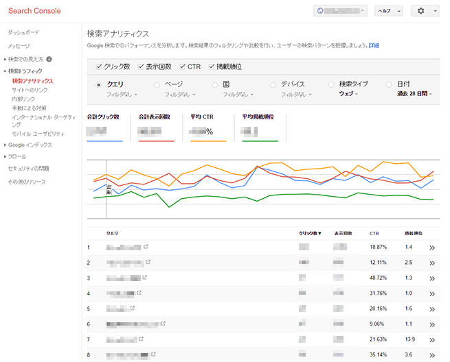 あながたすでにホームページを運営しているようなら、Google Search Consoleの「検索トラフィック-検索アナリティクス」を見てみましょう。あなたのサイトがどんなワードで結果結果に表示され、どのワードで訪問してきてくれたかがわかります(GoogleアナリティクスとGoogle Search Consoleを関連付けすると、アナリティクス側で見ることもできます)。