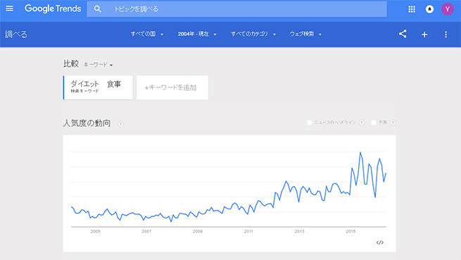 今どのようなものが流行っていて、どのくらい検索の需要があるのかがわかります。