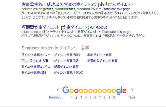 調べたワードにおいて、どのような似たワードで検索されているかが、検索結果の下部に表示されます。 普段検索する際は、あまり気にしていないかもしれませんが、こちらも参考にしてみるといいでしょう。